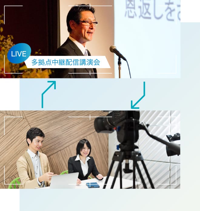 3eLiveと組み合わせることで、中継の映像を全国へ届けるWeb講演会が実施可能です。