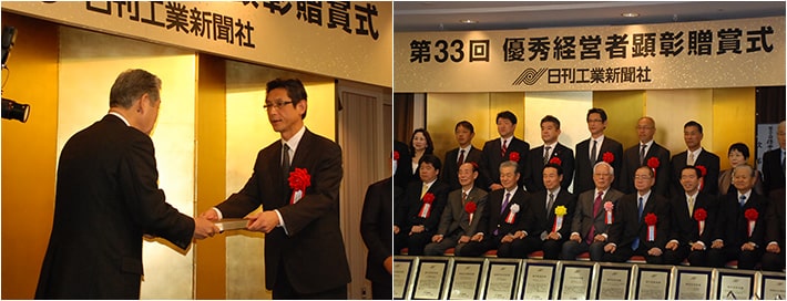 弊社代表取締役の木村隆夫は日刊工業新聞社主催 第33回「優秀経営者顕彰」 地域社会貢献者賞を受賞しました。