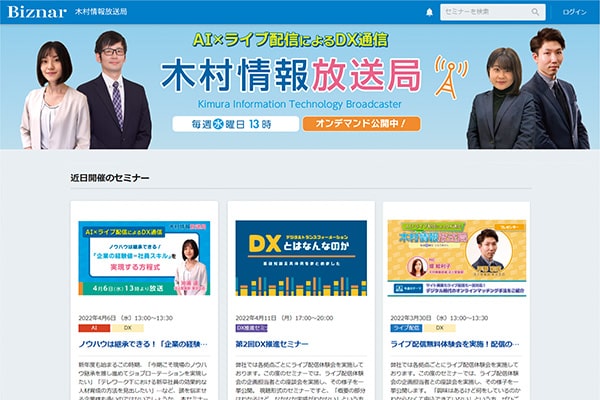 Web講演会サービスのパイオニアであり、人工知能活用事業を手掛ける木村情報技術株式会社(本社:佐賀県佐賀市、代表取締役:木村 隆夫、以下「木村情報技術」)は、本日2022年7月1日よりウェビナー情報一括管理システム「Biznar(ビズナー)」の販売を開始します。