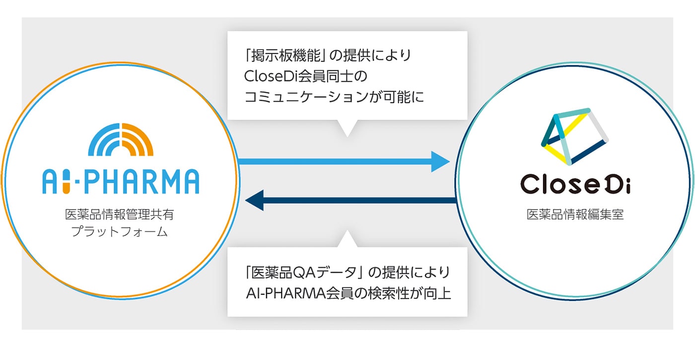 - 『CloseDi』から『AI-PHARMA』へ、「医薬品QAデータ」を提供します。『AI-PHARMA』の利用者は、検索できる医薬品QAデータ数が現在の約24,000件から25,000件に増加します。 (※1)