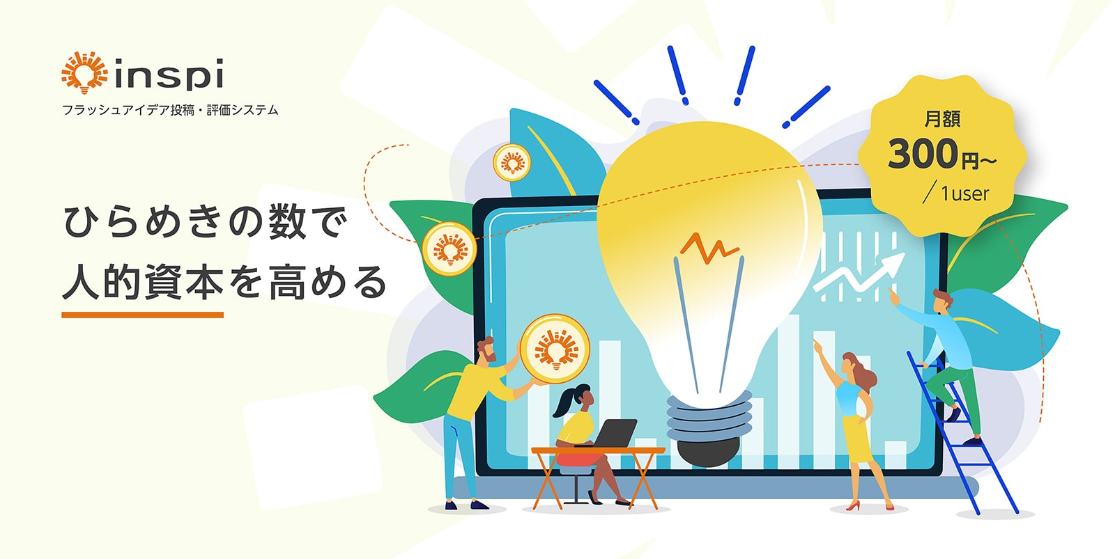 - inspi(インスピ)は、従業員が思いついたアイデアを気軽に共有できるシステムです。
