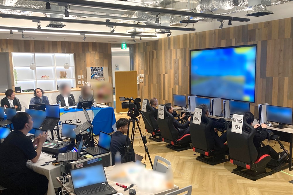 このイベントでは、エネコムの離れた4つの拠点を中継システムでつなぎ、社員が一緒にレーシングゲームで対戦しました。離れた場所にいる社員同士がゲームを通じて交流することで、社内コミュニケーションが活性化しました。さらに、イベントにはエネコムが提供する光回線を使用し、社員は自社通信回線の高い品質を体験、自社サービスに対する理解もより深まりました。