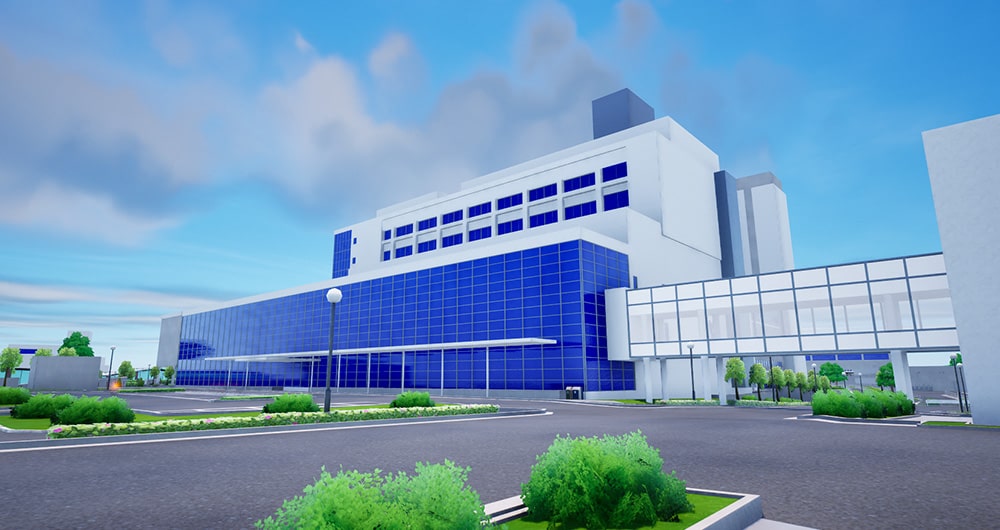 この建物は、生涯現役で活躍された世界的建築家、槇文彦氏によって設計、メタバースキャンパス内でリアルに再現。