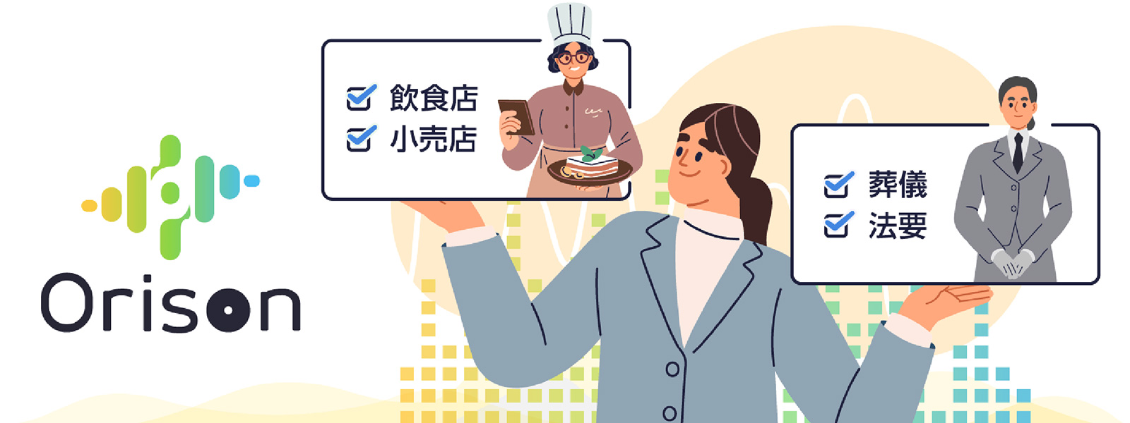 『Orison』は、当社がご提供する幅広いソリューションの"入り口"となるサービスです。現在は、飲食店や小売店、葬祭業界を中心にご提案を進めるとともに、一部の現場での実用を通じて、リアルなフィードバックをいただきながらサービスの改善と進化を図っています。