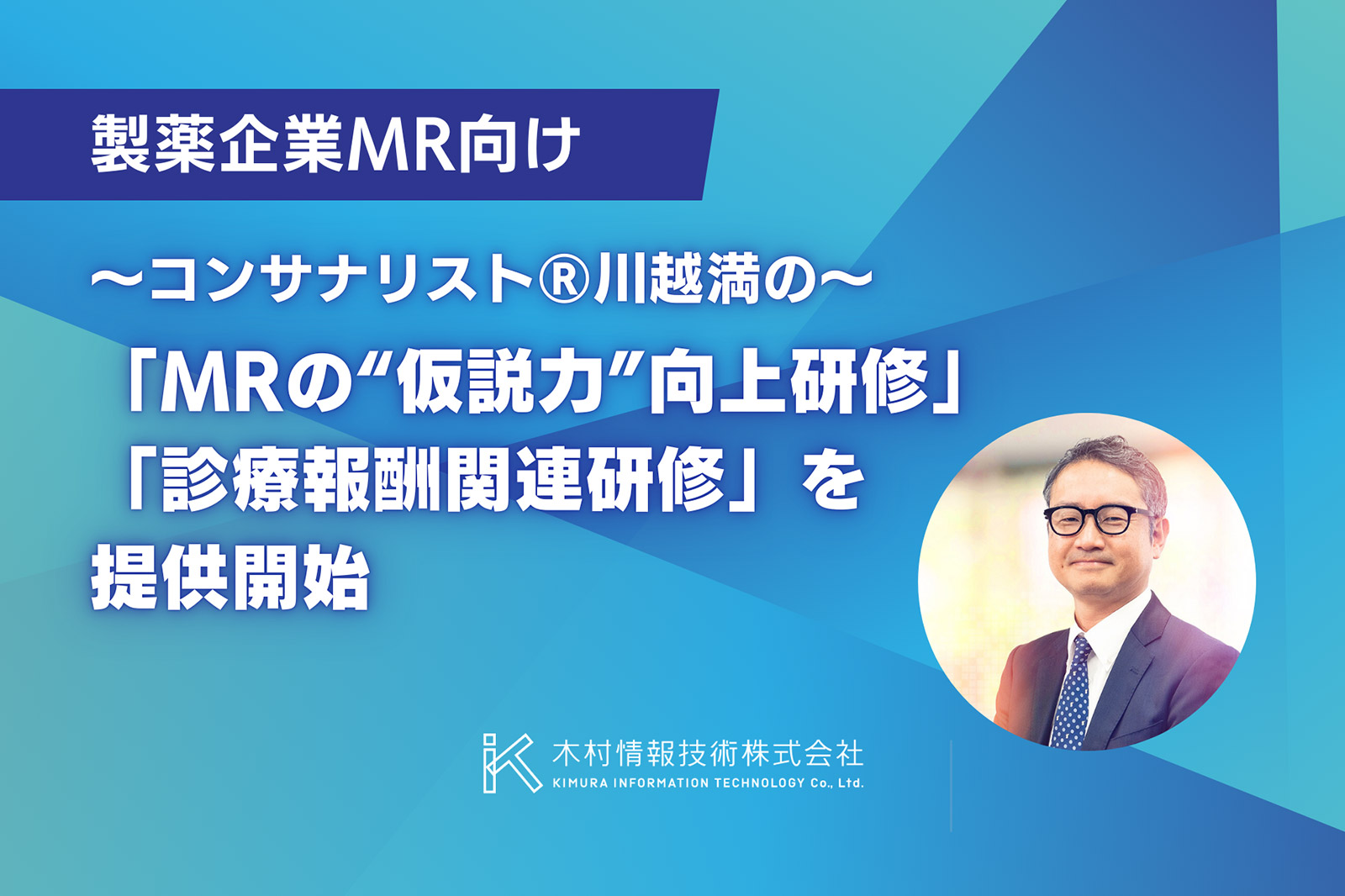 木村情報技術株式会社(本社:佐賀県佐賀市、代表取締役:木村 隆夫、以下「木村情報技術」)は、コンサナリスト®川越満によるMR向けの新たな研修プランとして、「MRの"仮説力"向上研修プログラム」および「診療報酬関連研修プログラム」の提供を開始いたしました。