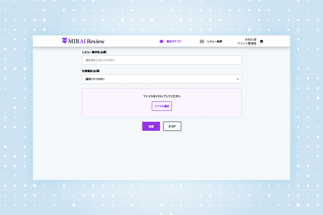 - 本サービスは、生成AIによるレビュー(審査)支援であり、最終判断は必ず人が行うようお願いいたします。