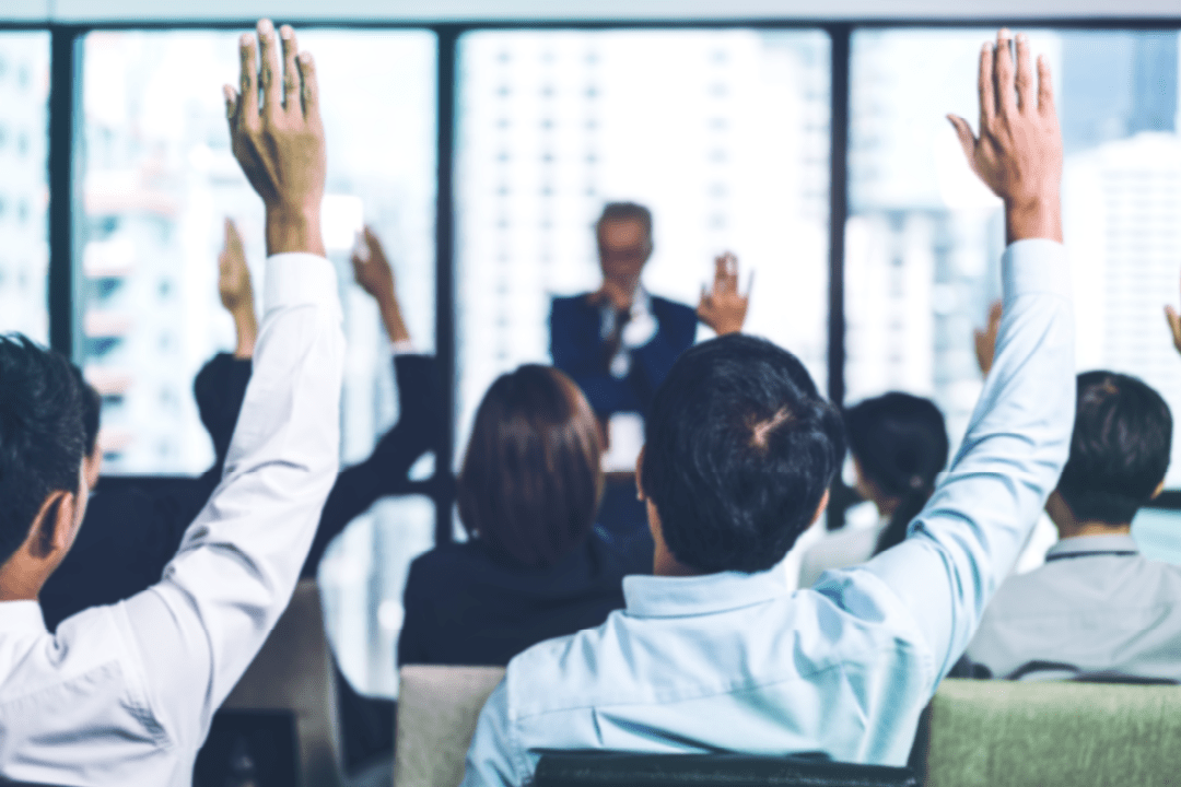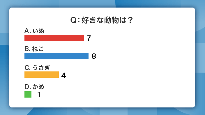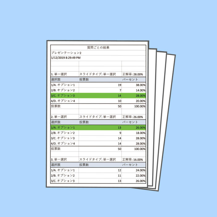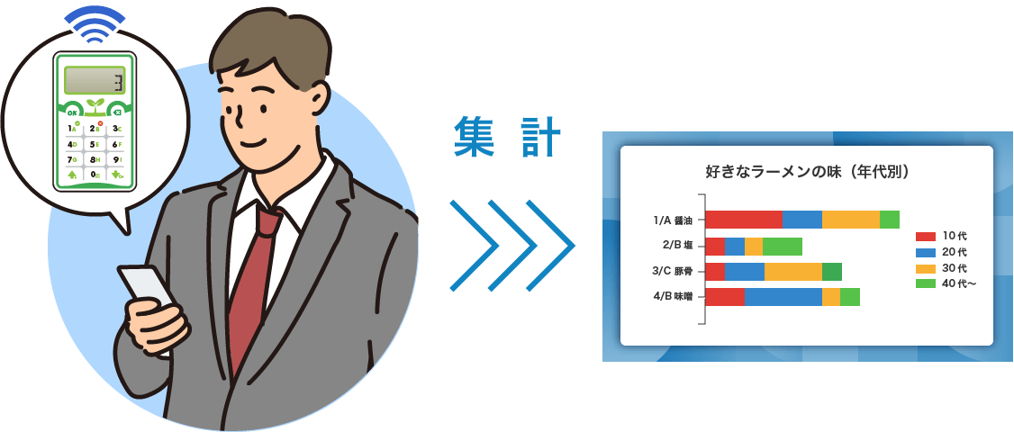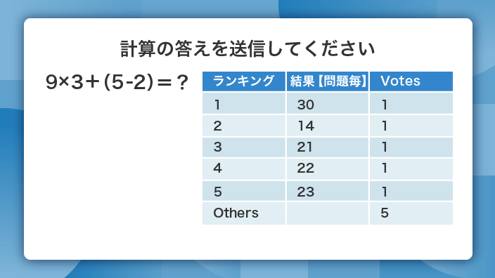 プレゼン資料に集計機能を持たせることで参加者の意欲を高め、一体感を生み出し、より効果的な発表を行うことが出来ます。