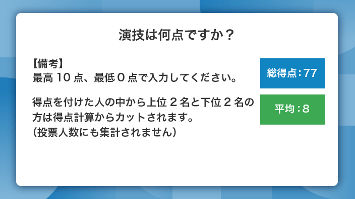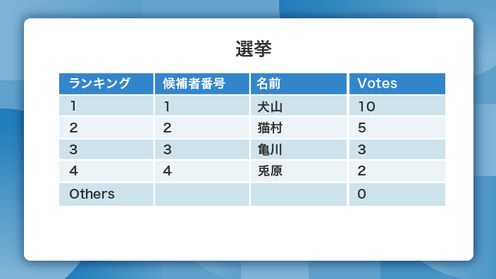 選択式アンケートに似た機能ですが、投票によりランキングを行います。