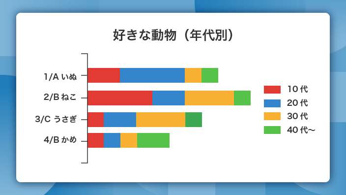 アンケートの集計を棒グラフ、円グラフで表示します。