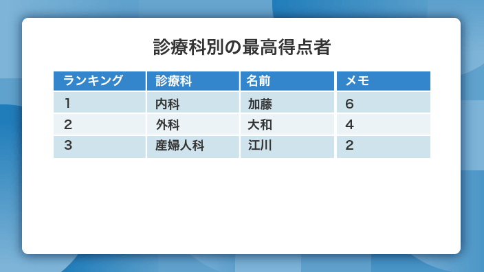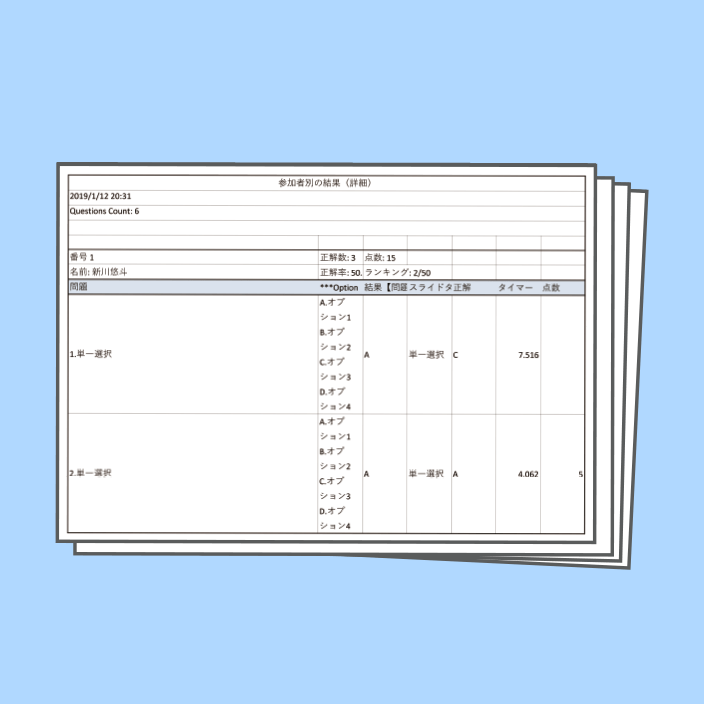 複数のクイズに対しての得点集計などを個人ごとに集計します。