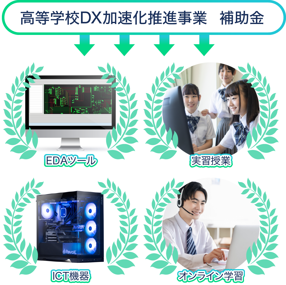 EDAツール学習の導入、パソコン等のICT機器、実習授業、オンライン学習システムの導入をご提案します。EDAツールやパソコンのみの導入でもお気軽にご相談ください。