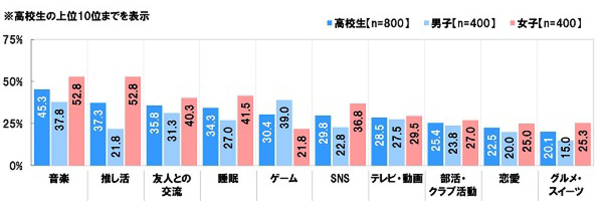 ソニー生命保険株式会社による高校生への生きがいについてのアンケートではゲームが30.4%と高い関心を示していることがわかりました。